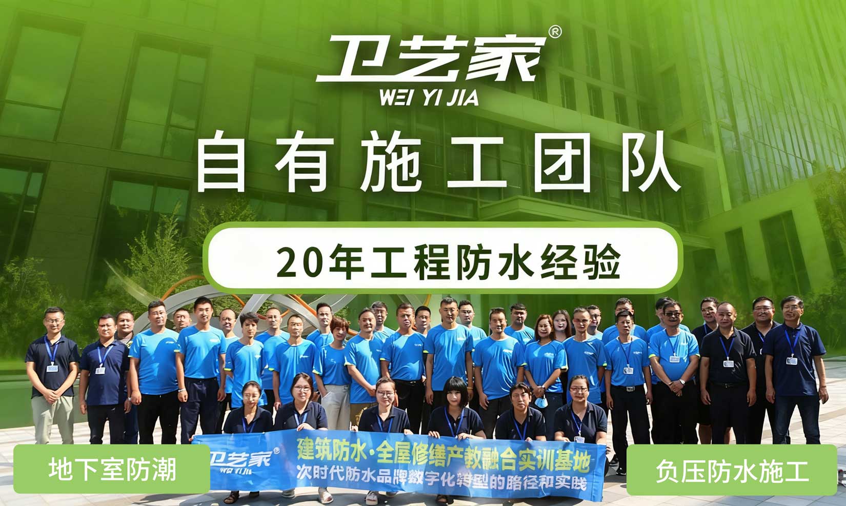 卫艺家防水,创始人专业防水服务20年,提供南通负压防水施工等专业防水工程施工,自有施工团队,20年工程防水经验。卫艺家防水凭借创始人 20 年的专业积淀和国家高新技术企业的技术实力,以负压防水技术为核心,为各类建筑渗漏难题提供系统性解决方案。作为拥有二级防水施工资质、30 余项国家专利的正规企业,卫艺家已累计完成超 8000 个防水项目,从别墅地下室负压防水工程、大型建筑屋面防水到老旧小区平改坡防水工程,用 "背水面主动防渗" 的技术突破,重新定义了防水工程的标准。